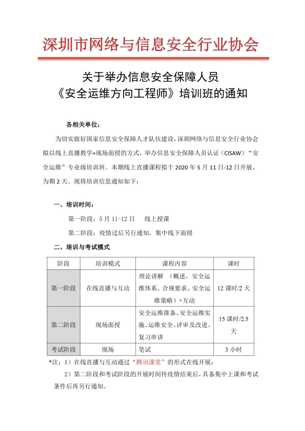 关于举办CISAW安全运维专业级培训班通知(5月档)