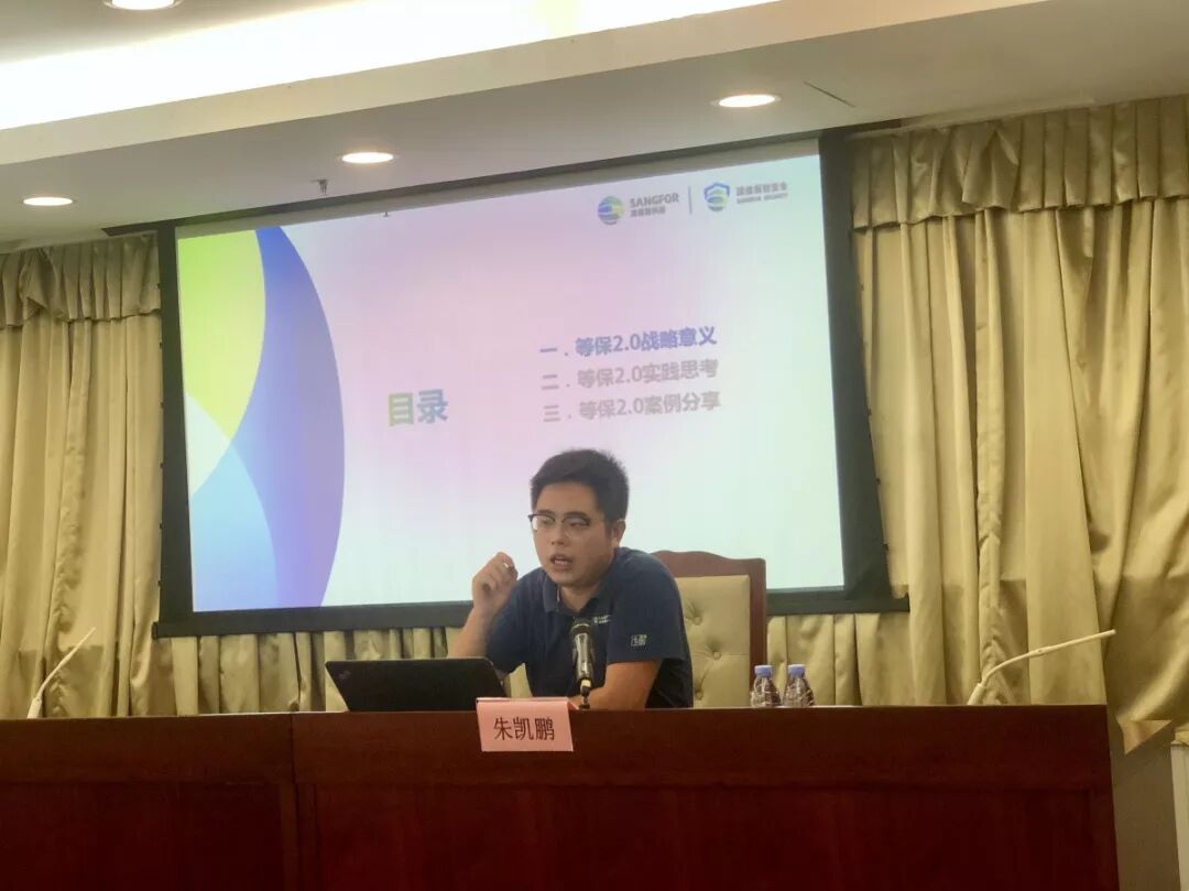 深信服信息安全专家朱凯鹏从等保2.0战略意义、实践思考和案列分享三个模块进行了讲解。以实际案例来生动细致的分析了等保2.0,最后通过现场互动方式,对培训效果进行了巩固。