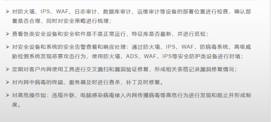 专业服务:专业网络安全咨询服务、人员驻场运维服务、系统风险评估、系统渗透测试、安全漏洞检查等服务、应急响应、代码审计、APP加固、资产梳理 。