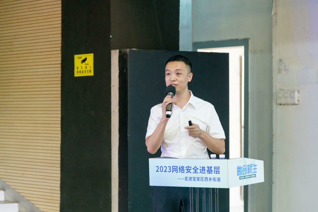 在宝安区西乡街道的活动现场,由协会会员单位贝为科技服务与交付部总监、协会特邀讲师何皑先生与深圳市常行科技有限公司方案创新中心总监赵振动先生分享的《数据安全管理与应用》《网络安全防护意识》,为区属的20多个社区宣传/网信口工作人员和20多位企业代表,从日常网络安全防护与数据安全管理等不同角度讲解了网络安全工作的重要性。