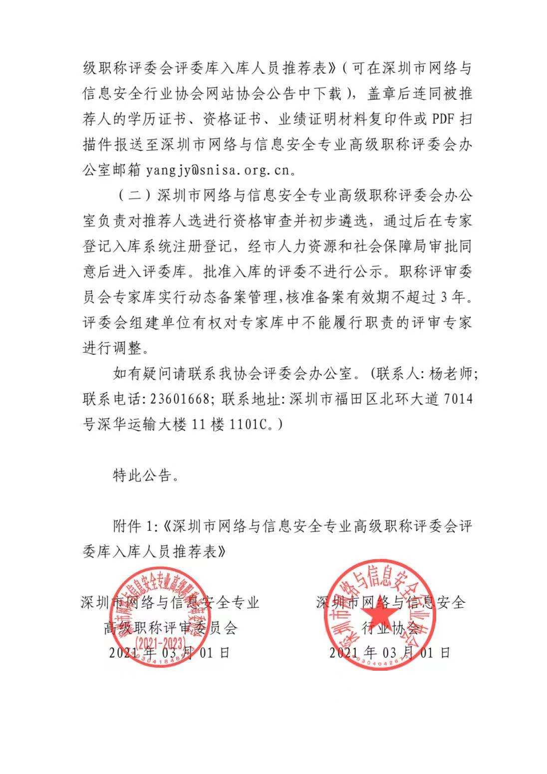 附件1下载:深圳市网络与信息安全专业高级职称评委会评委库入库人员推荐表.doc