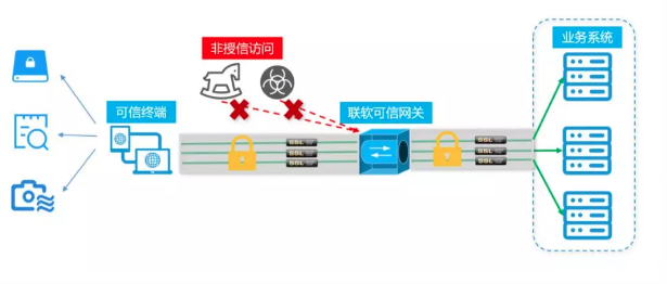 联软科技从2017年已经开始研究零信任架构,结合自身丰富的网络安全管理和终端安全管理实践经验,开发了联软UniSDP安界软件定义边界系统。联软SDP系统主要基于可信身份、可信终端、可信网络、可信服务四个层面实践零信任网络架构,为企业内网安全和云安全打造统一、安全和高效的访问入口。