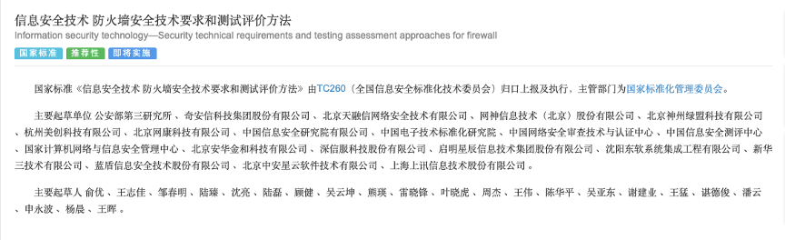 CB/T20281-2020《信息安全技术 防火墙安全技术要求和测试评价办法》将于2020年11月1日实施,实施后将全部代替GB/T 20010-2005《信息安全技术 包过滤防火端评估准则》、GB/T 20281-2015《信息安全技术 防火墙安全技术要求和测试评价方法》、GB/T 31505-2015《信息安全技术 主机型防火墙安全技术要求和测试评价方法》、GB/T 32917-2016《信息安全技术 WEB应用防火墙安全技术要求与测试评价方法》。