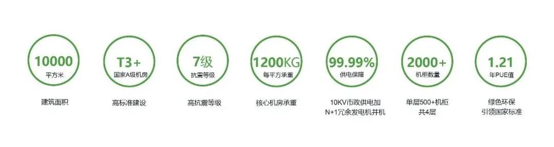 脉山龙云数据中心建筑面积10000㎡,层高5.5米,每层2000平米,由主机房、网络接入间、配电房、冷冻站、消防系统、监控中心和高端办公区等组成。