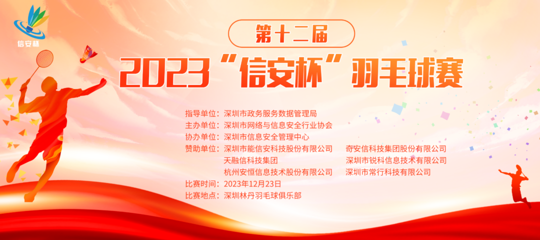 12月23日,由深圳市政务服务数据管理局指导、深圳市网络与信息安全行业协会主办、深圳市信息安全管理中心协办的第十二届 “信安杯”羽毛球比赛在林丹羽毛球俱乐部(石岩体育馆)揭开战幕。