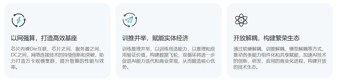 面向AI时代,中兴通讯以客户价值为核心,提供从算力、网络、能力、智力到应用的全栈智算解决方案。多层次、多样化的解决方案为用户提供了更加个性化的选择,从大模型训练智算中心到训推混合智算中心再到边缘训推一体机,满足不同场景下的性能、成本和服务的差异化需求。