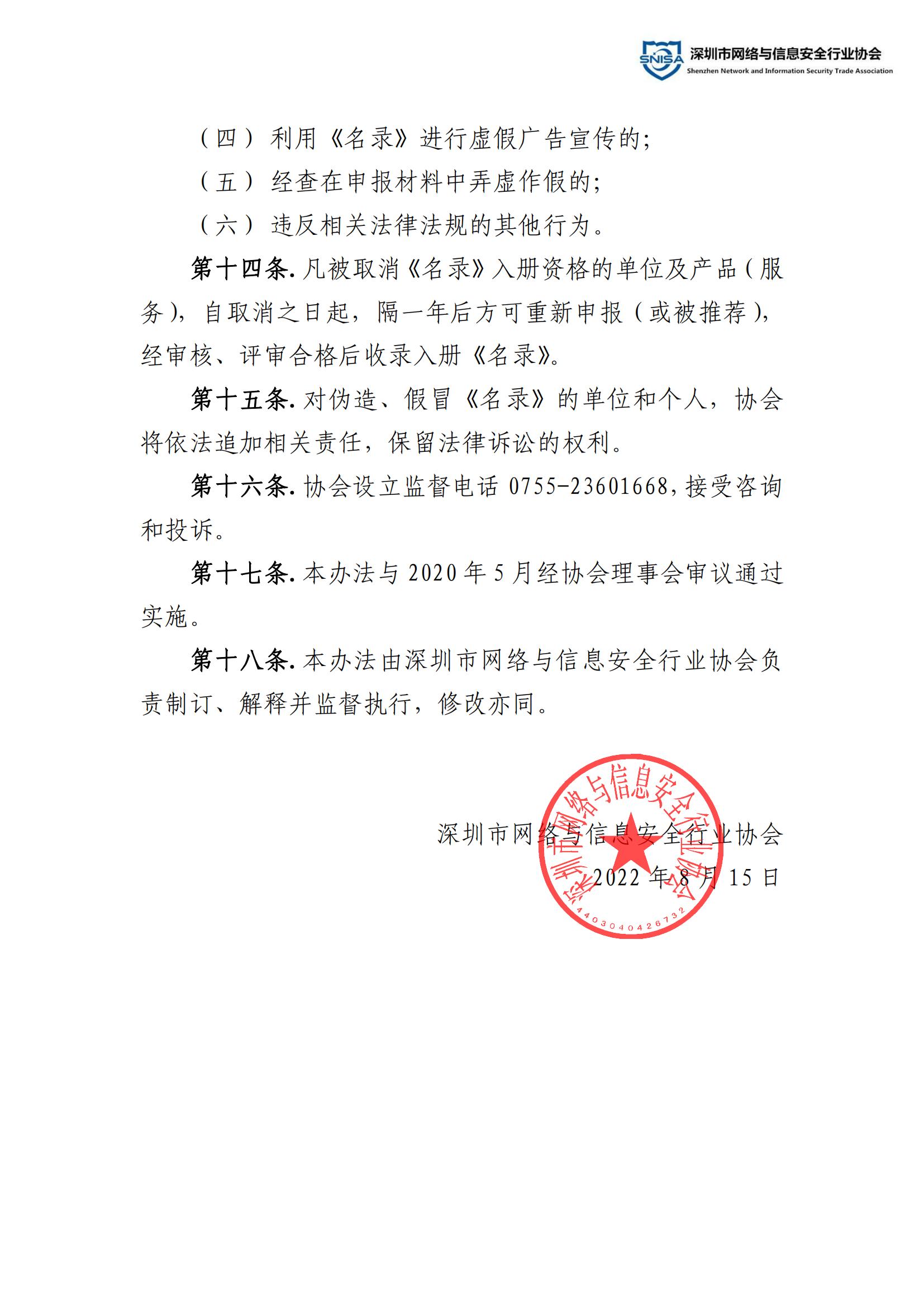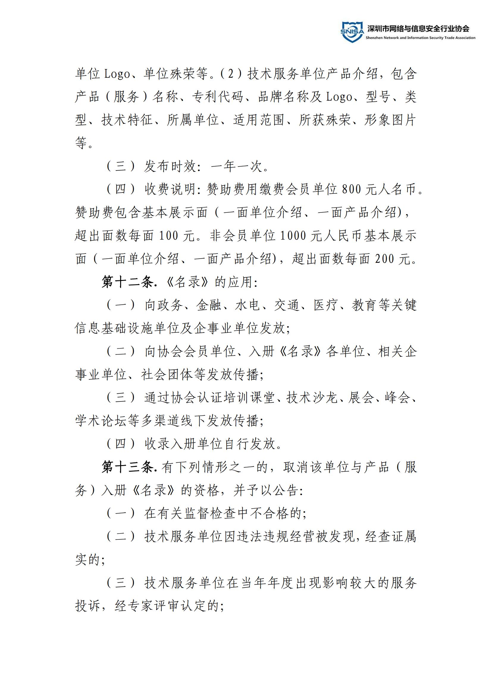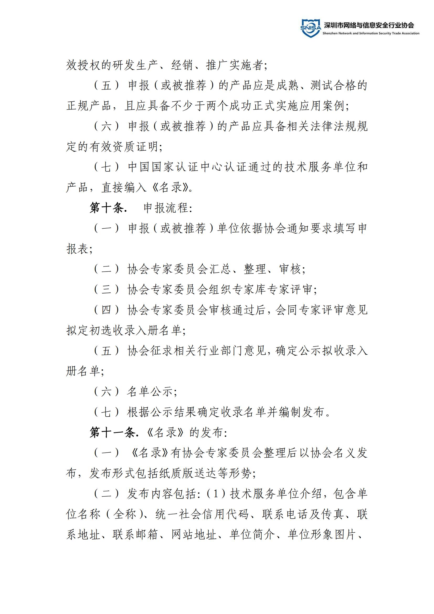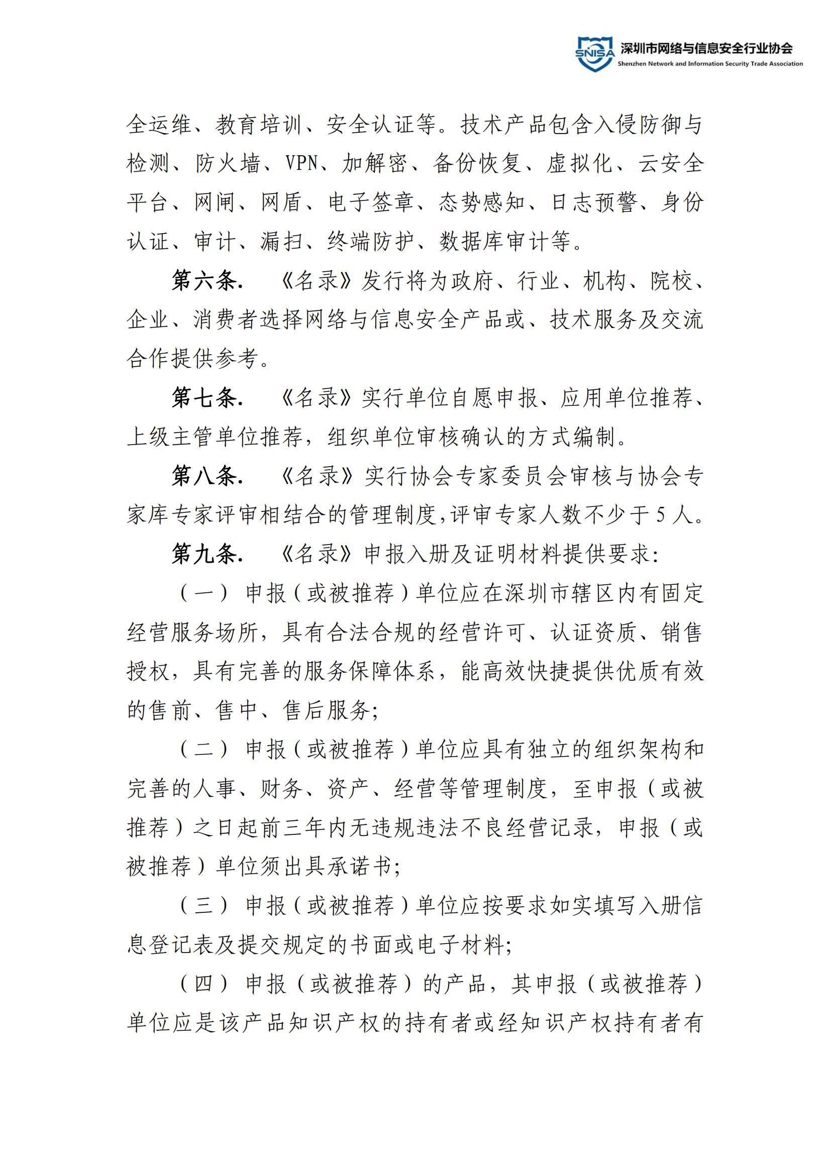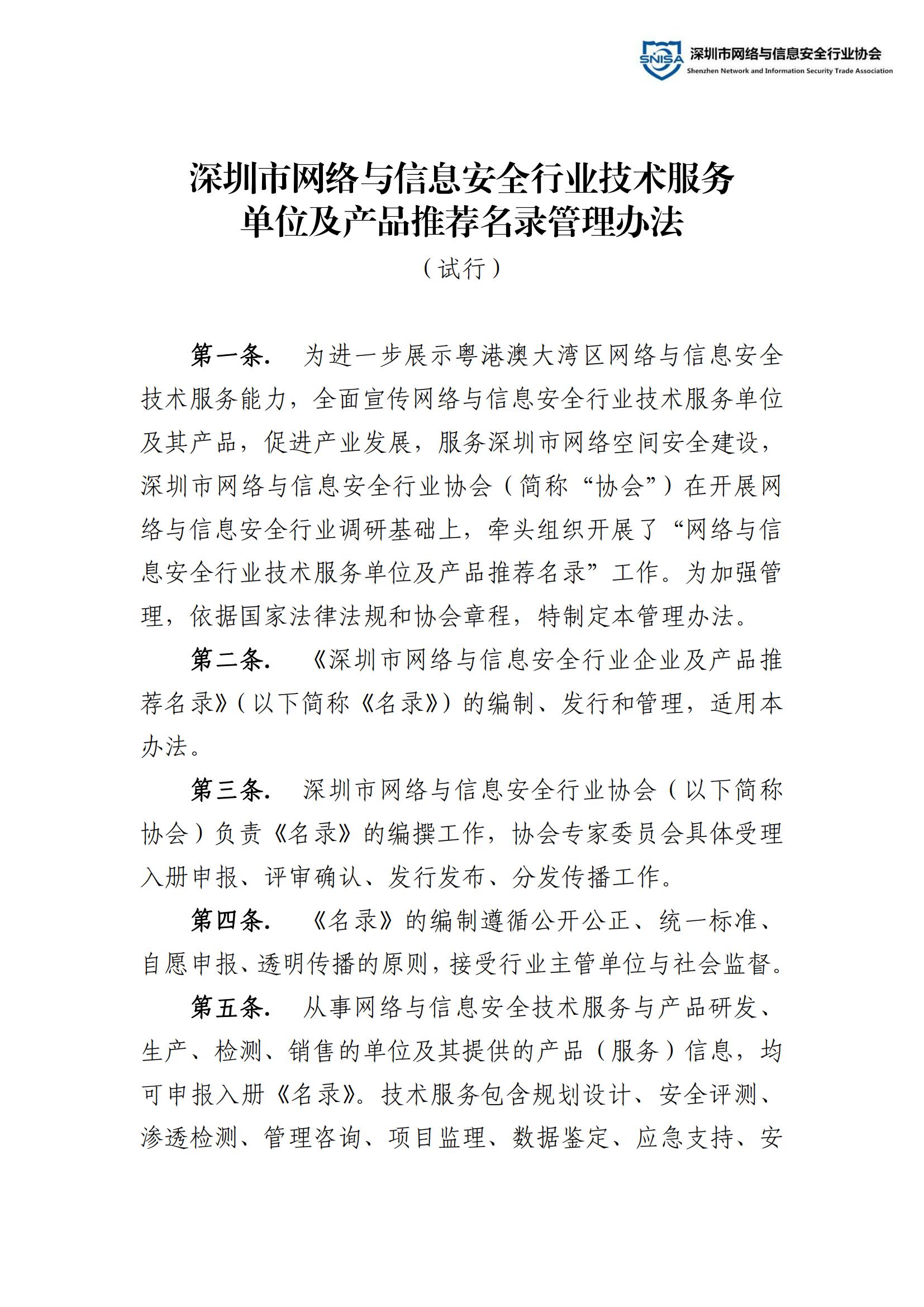 深圳市网络与信息安全行业技术服务单位及产品推荐名录管理办法