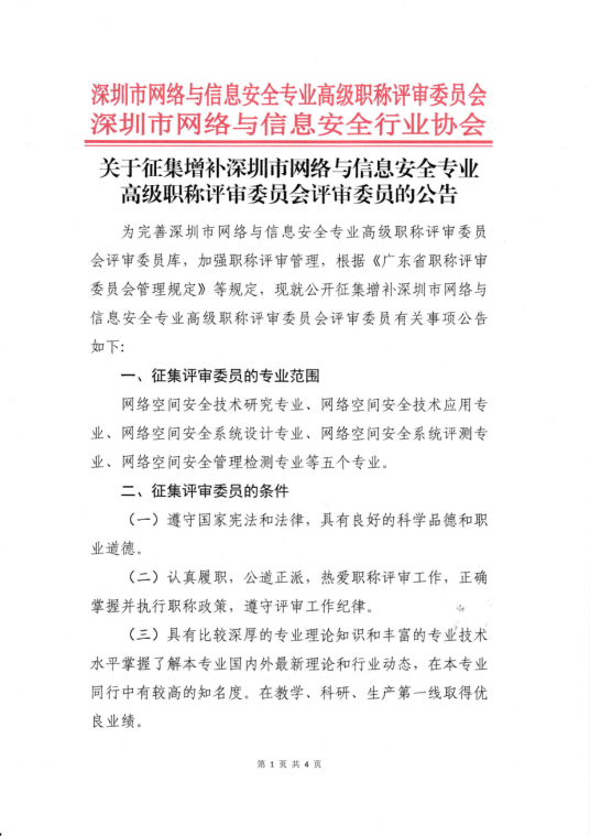 关于征集增补深圳市网络与信息安全专业高级职称评审委员会评审委员的公告2025