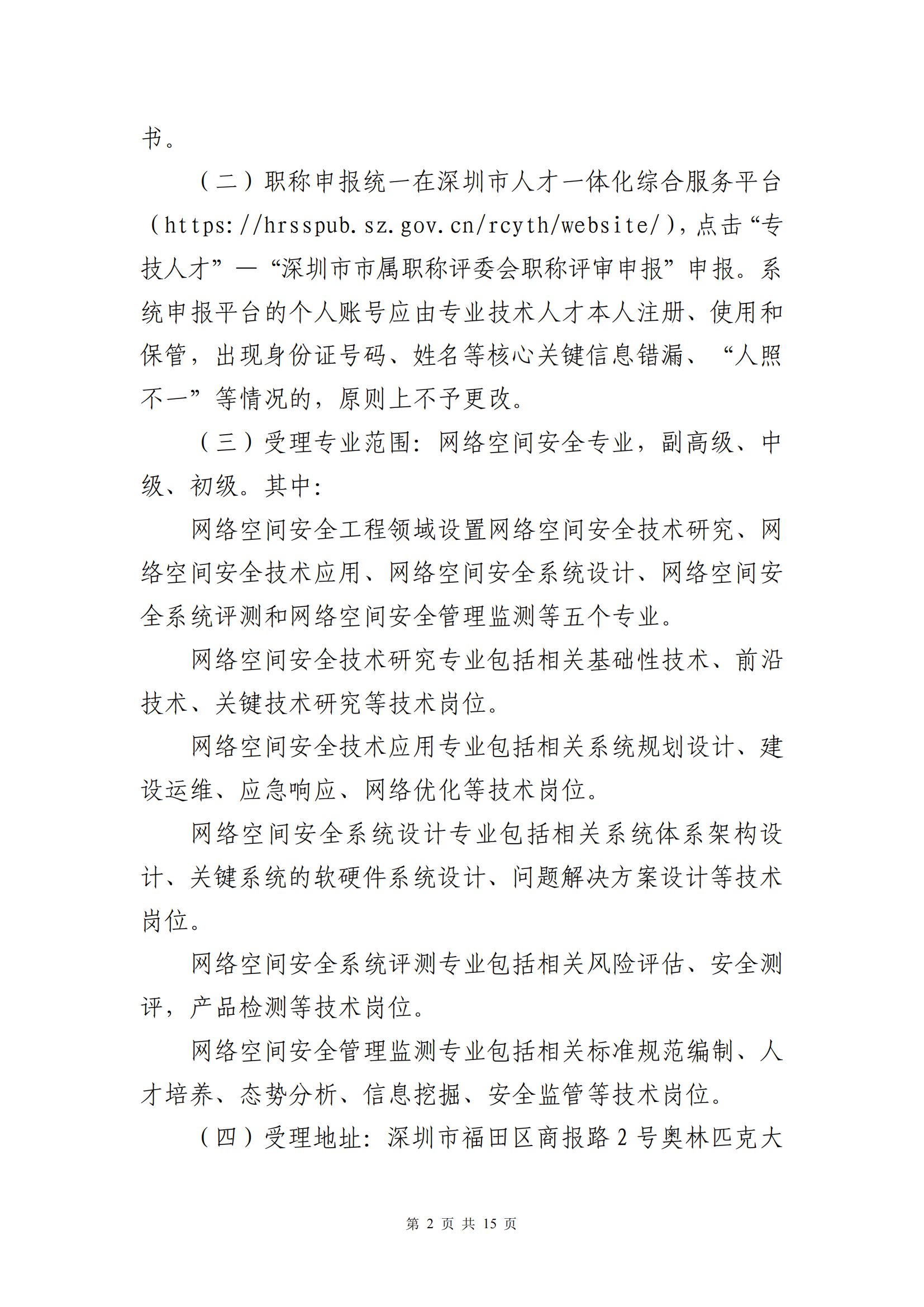 关于开展2024年度深圳市网络空间安全专业职称评审工作的通知