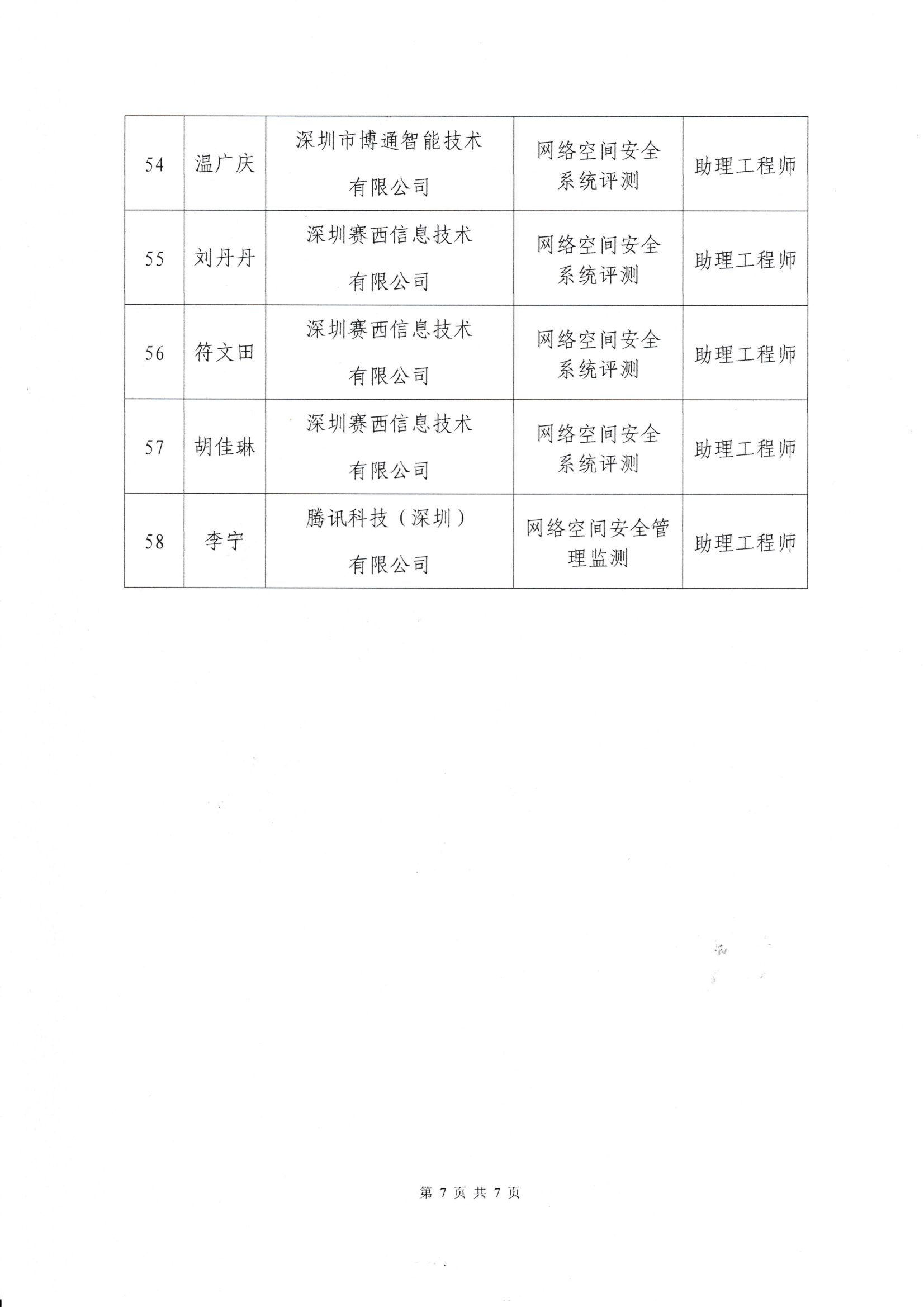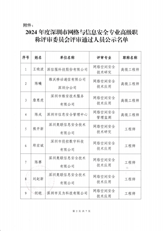 关于2024年度深圳市网络与信息安全专业高级职称评审通过人员公示的通知