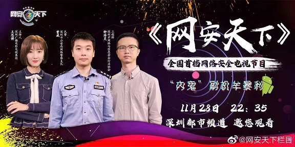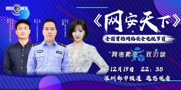 《网安天下》电视节目旨在通过澄清网络谣言、解读涉网案件、普及网络知识等形式,帮助广大市民群众提升风险防范意识,助力企业优化网络营商环境,跟上深圳经济特区智慧城市发展建设的大步伐。节目于每周六晚22:30播出,同时会在深圳网警新浪微博号、微信视频号等官方媒体渠道推送发布。