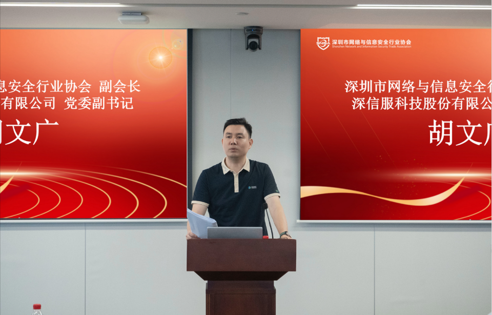 随后,深圳市网络与信息安全行业协会副会长、深信服科技股份有限公司党委副书记胡文广,分享了行业龙头企业深信服的海外战略与实战经验及近年来取得发展成就,分享了深信服保持增长势头良好经验,非常值得行业同仁学习借鉴。发言中,也对协会发展提出了优质建议,期望协会深化资源整合与共享机制,加强前沿趋势研讨,推动行业标准完善,促进企业优势互补、规范发展,并呼吁协会统筹、行业同仁协力,推进深圳网安行业迈向更高质量的未来。