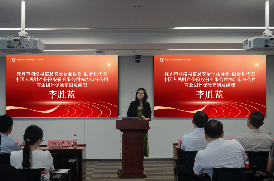 最后,深圳市网络与信息安全行业协会副会长代表、中国人民财产保险股份有限公司深圳市分公司商业团体保险部副总经理李胜蓝,针对网络安全保险领域,用数据和案例,展示了国内外发展现状及未来趋势,指出网络安全保险产业链发展机遇,提出合作建议,强调网络安全保险需行业各领域多方参与,共同努力、共同促进,相信在人保带领和努力推动下,一定能取得更大的突破性进展。