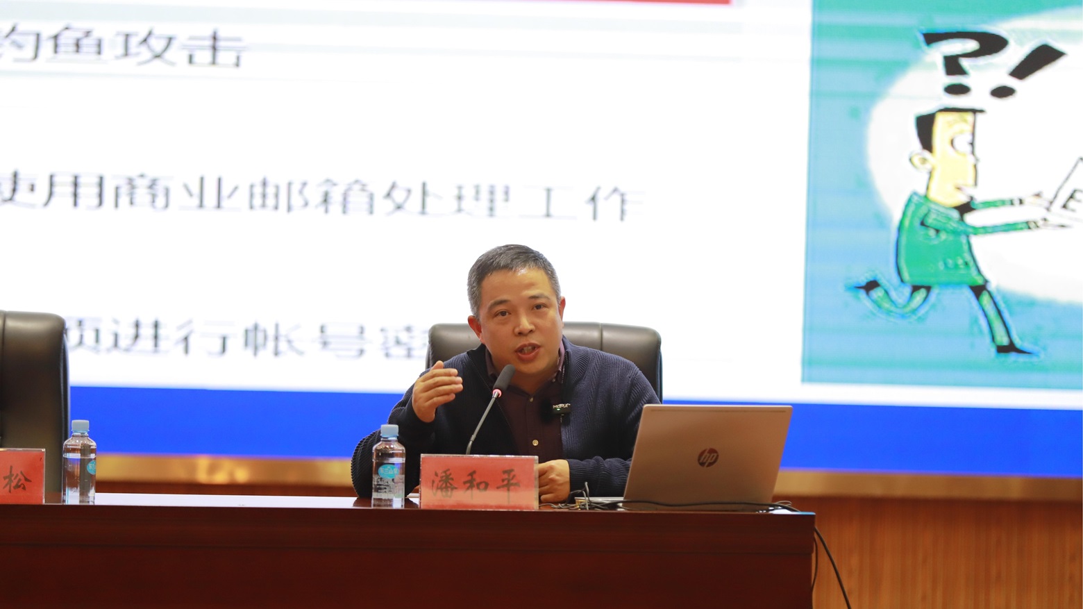 随后,与会代表认真听取了由协会特邀讲师:深圳市能信安科技股份有限公司网络安全技术中心总监潘和平、深圳市科盾科技有限公司总经理刘佳,分享的《网络安全意识》和《基层单位舆情应对技巧》。两位讲师从当前网络安全形势、常见的网络安全威胁与案例、日常工作生活中的安全意识以及基层单位网络舆情应对方法等方面,为大家做了细致介绍。