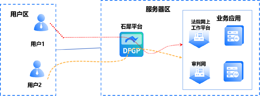 基于身份认证构建动态权限矩阵,区分院内院外用户访问法院网上工作平台的访问权限,实现了灵活的身份访问控制。