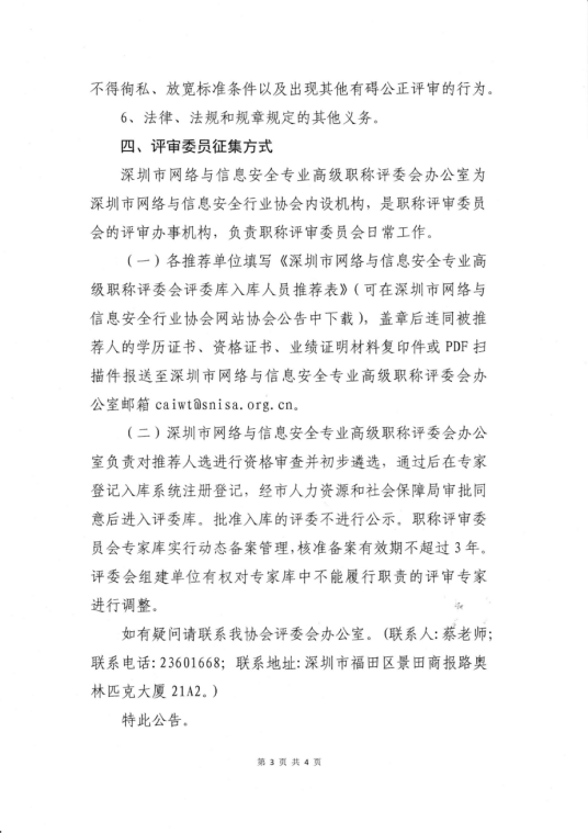 关于征集增补深圳市网络与信息安全专业高级职称评审委员会评审委员的公告2025