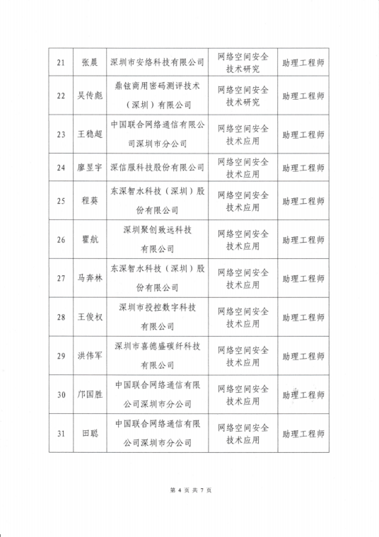 关于2024年度深圳市网络与信息安全专业高级职称评审通过人员公示的通知