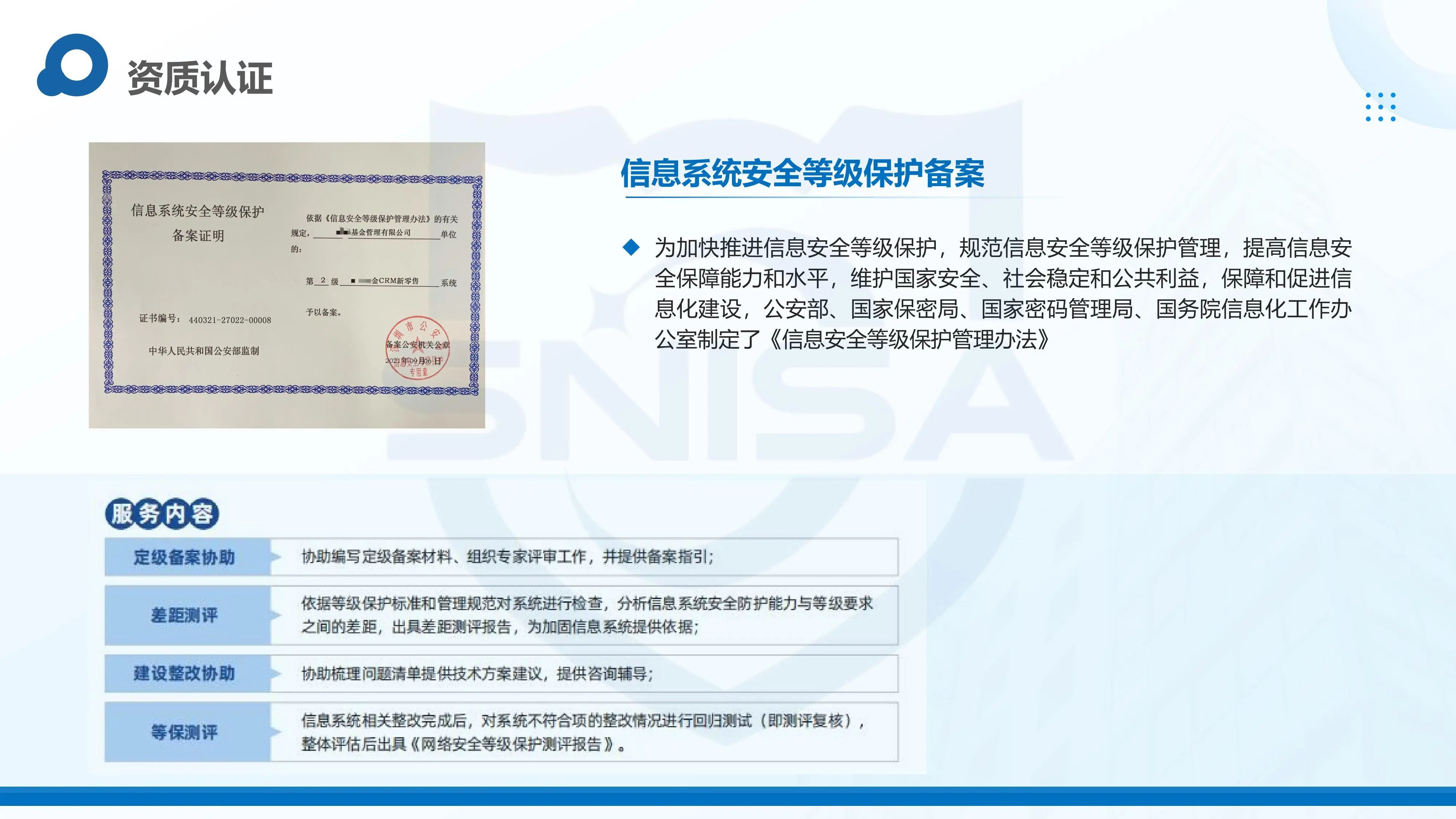 深圳市网络与信息安全行业协会,英文名称为:Shenzhen Network and Information Security Trade Association(SNISA),是经深圳市经贸信息委信息安全处倡议,由业内企业自主发起,于2014年7月25日获深圳市民政局批准成立的非盈利性社会团体,是深圳市网络与信息安全行业的权威行业组织。协会是中国网络安全审查技术与认证中心(CCRC)在深圳唯一授权的工作站,是经深圳市人力资源和社会保障局核准,开展网络空间安全工程技术专业职称评审工作的社会组织。